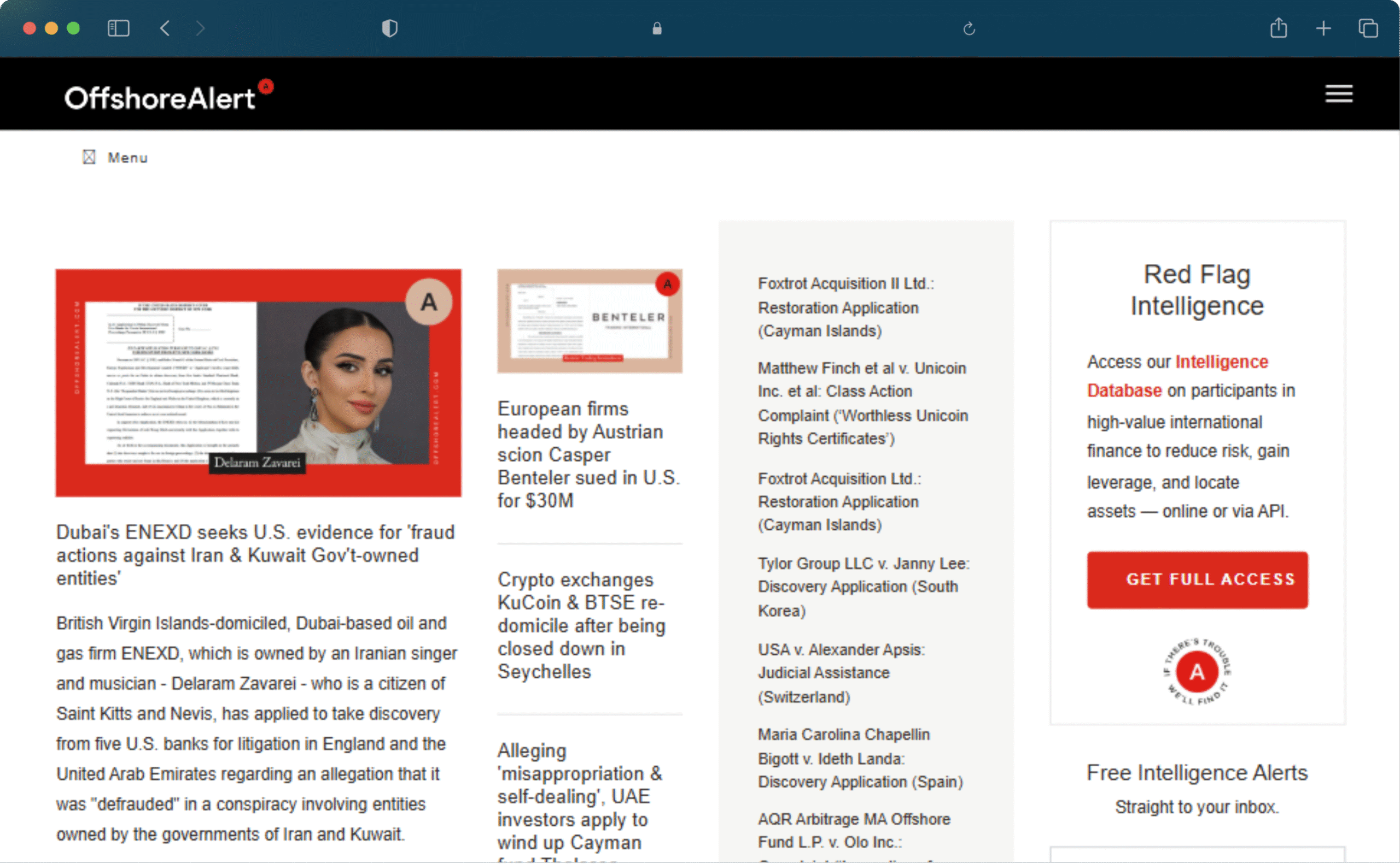 Investment & Funding Opportunities: Venture capitalists and institutional investors are risk-averse. A single OffshoreAlert link can derail negotiations or due diligence processes.